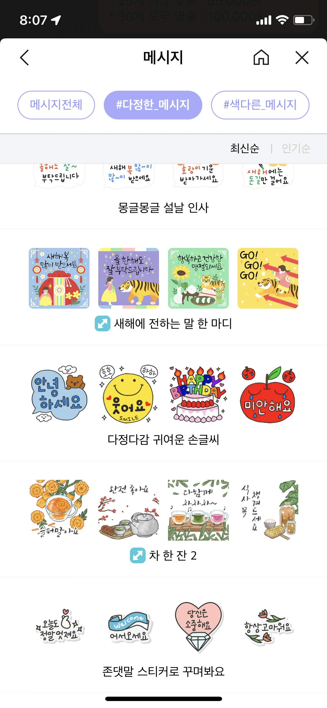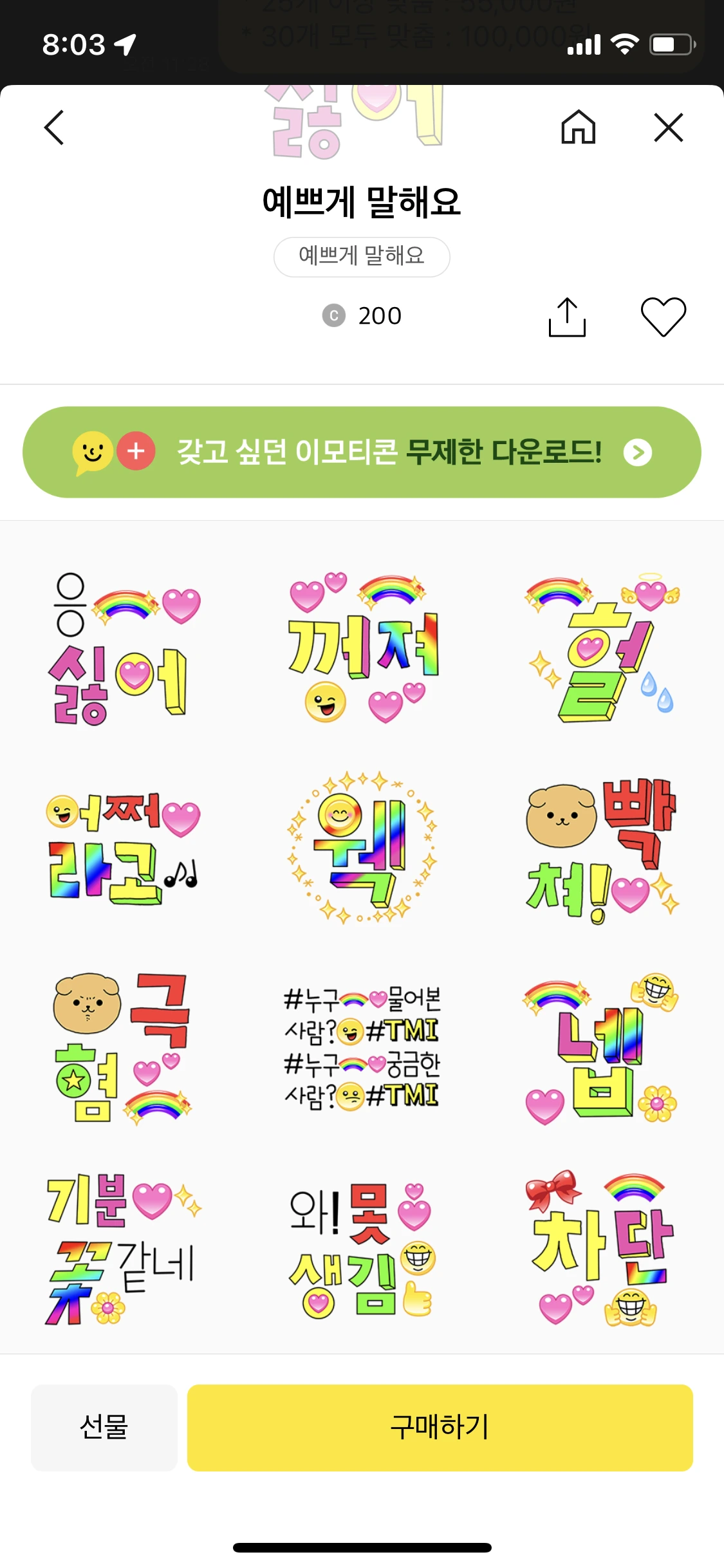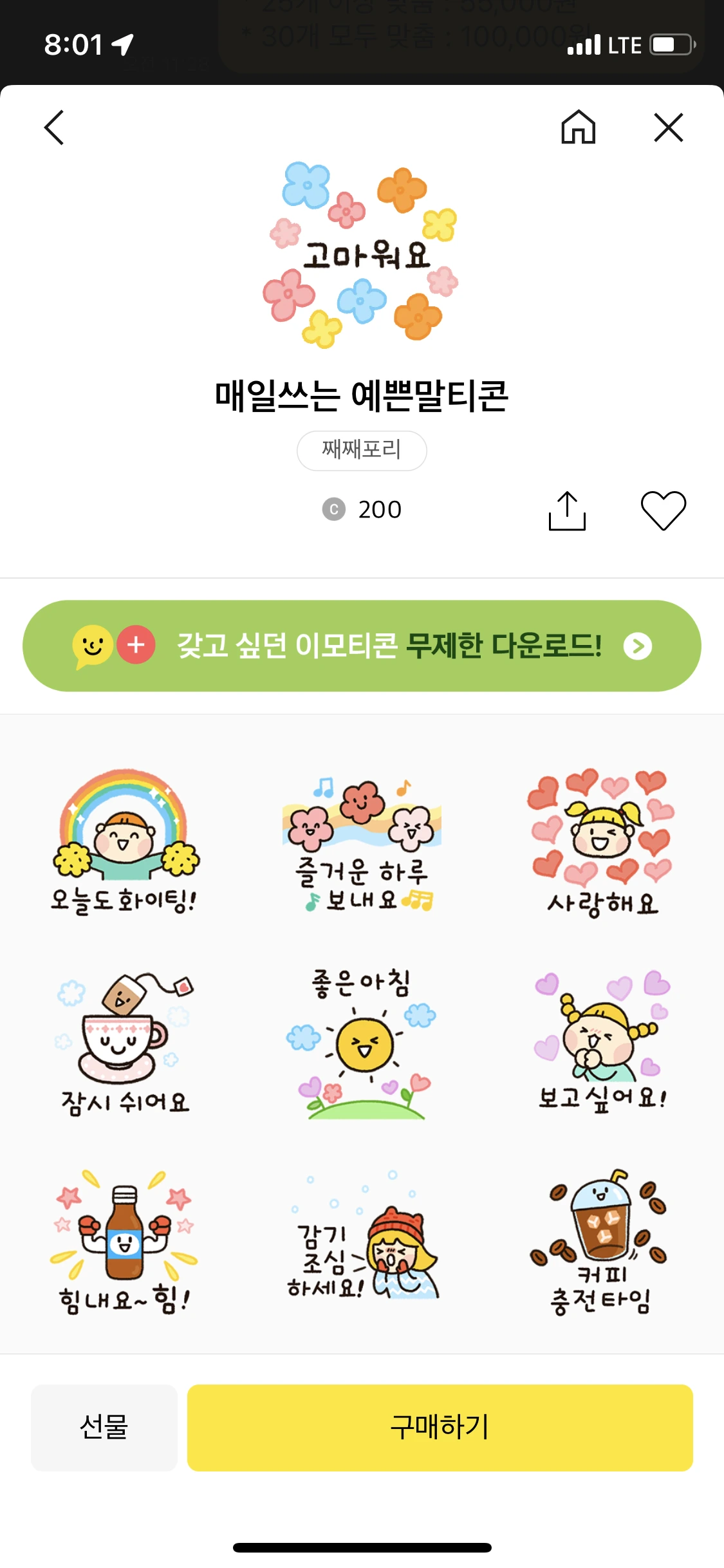 선물을 주고 싶었다. 그간 고생한 나에게도, 엄마와 아빠, 언니에게도. 선물에 큰돈을 쓸 순 없어 작지만 기분전환이 되는 걸 고민했다. 카카오톡을 켜고 이모티콘 쇼핑을 했다. 하고 싶은 말을 내가 좋아하는 캐릭터에 빙의하듯 무심히 던지는 이모티콘. 기분전환엔 딱이었다. 아주 굿초이스였다!