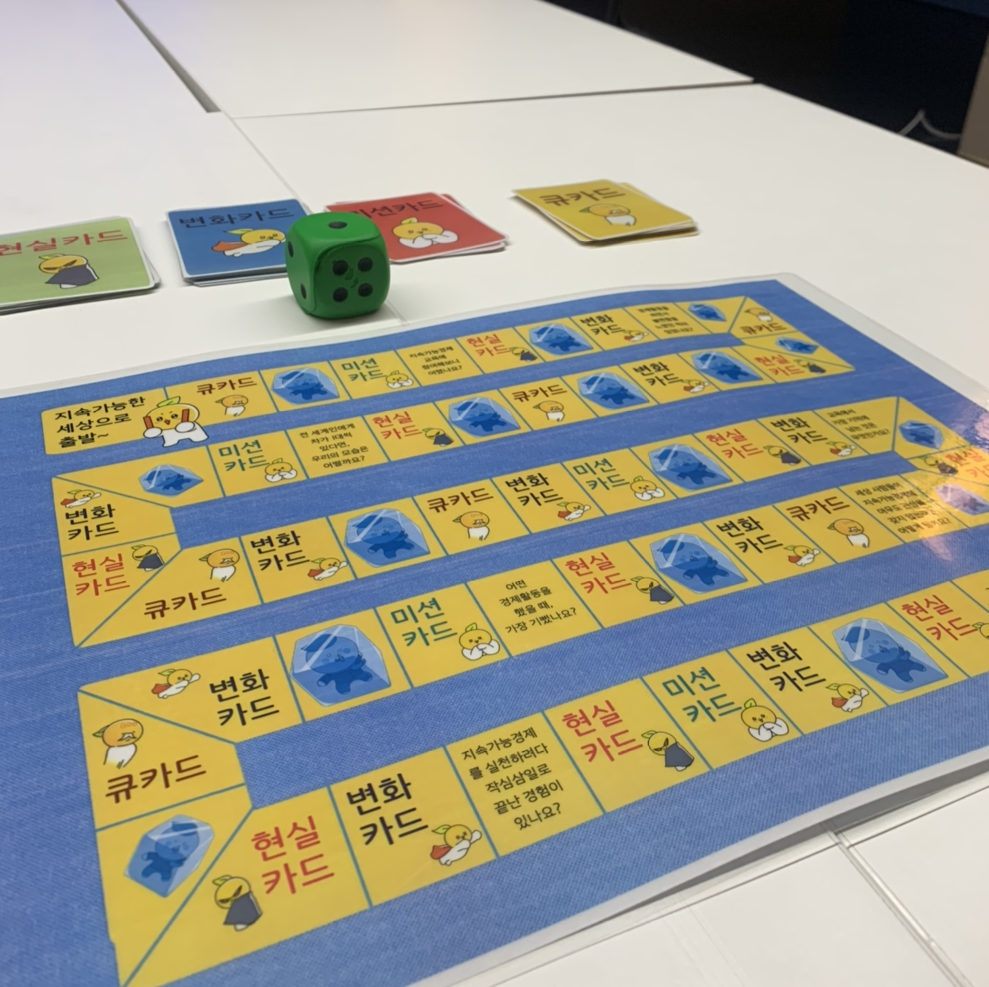 최근에는 “재미”를 가지고 고민이 많았다. ‘지속가능경제’나 ‘공정무역’의 가치를 교육을 통해 알리려면, 이 콘텐츠가 재미있고 즐거워야 하는데 실제 내용은 재미와 거리가 멀다. 그렇다면, 우리는 이 주제를 어떻게 재미있게 포장해야 할까. 정성스레 준비한 PPT를 잘 보지 않는 친구들, 듣는 게 지루한 친구들에게 어떤 재미를 줄 수 있을까 고민하다 게이미피케이션을 적용한 교구를 제작하게 됐다.