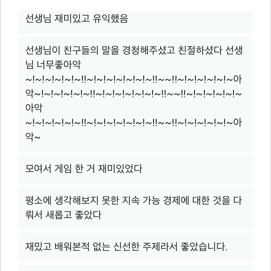“내가 뭘 좋아하지”, “나하면 뭐가 떠오르지”, “내가 잘하는 건 뭐지” 이 질문으로 나라는 사람을 돌이켜볼 수 있는 교육이었다면, 그 교육은 내 기준에서는 성공한 교육이라고 말하고 싶다. 다른 교과과정과는 별개로, 내가 하는 교육은 보이지 않지만, 중요한 가치에 대한 전달이다. 그래서 나를 돌아보는 것부터가 시작이라고 생각한다.