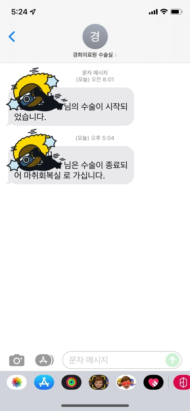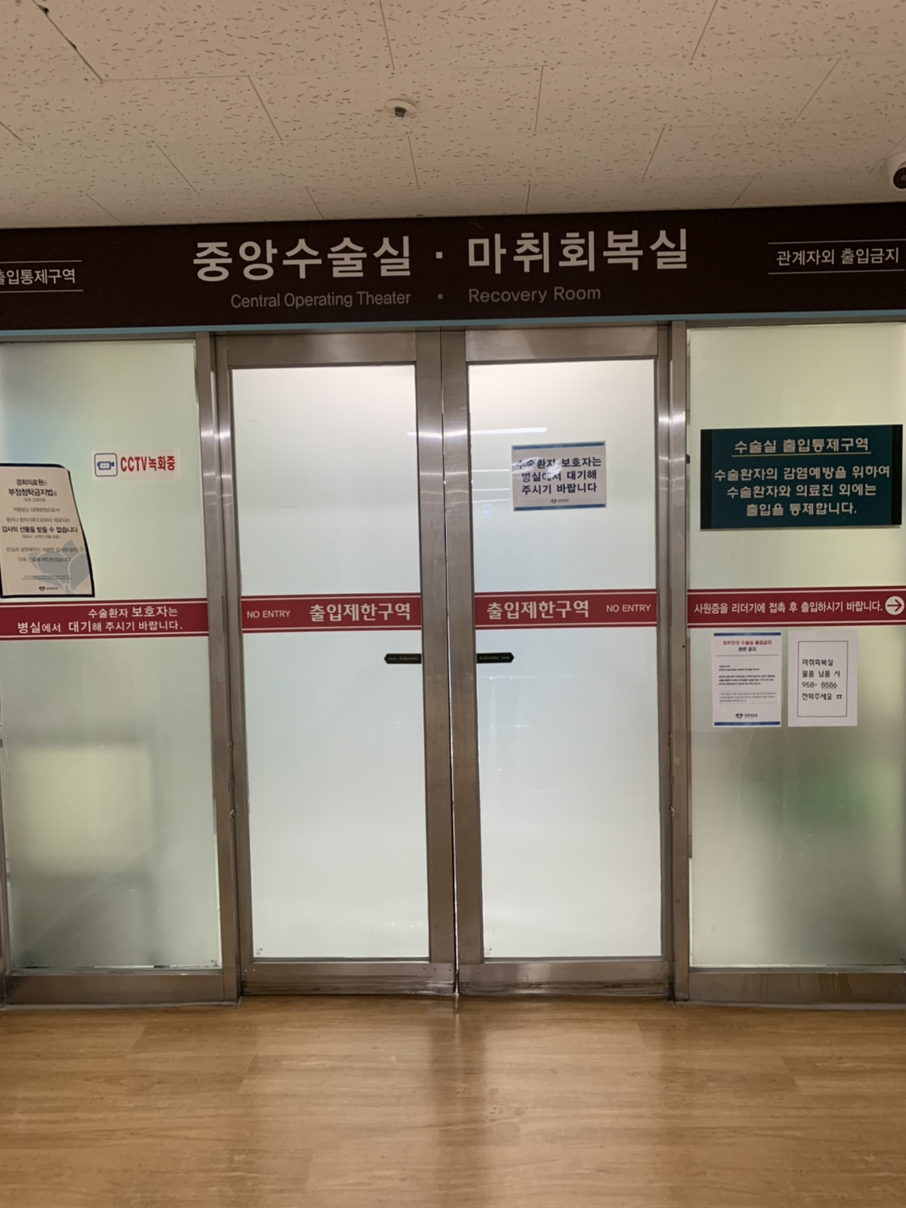 수술이 하루 종일 걸릴 거라는 얘기는 들었었다. 그럼에도 수술시간이 최대 8시간이 넘어가면 다른 장기까지도 무리가 갈 수 있기 때문에, 8시간을 넘기는 건 꼭 피해야 하는 일 중 하나였다. 오전 8시, 휴대폰 문자가 울렸다. 수술을 시작한다는 알람이었다. 그리고 그때부터 엄마, 언니의 손을 잡고 문 앞을 하염없이 동동거렸다.