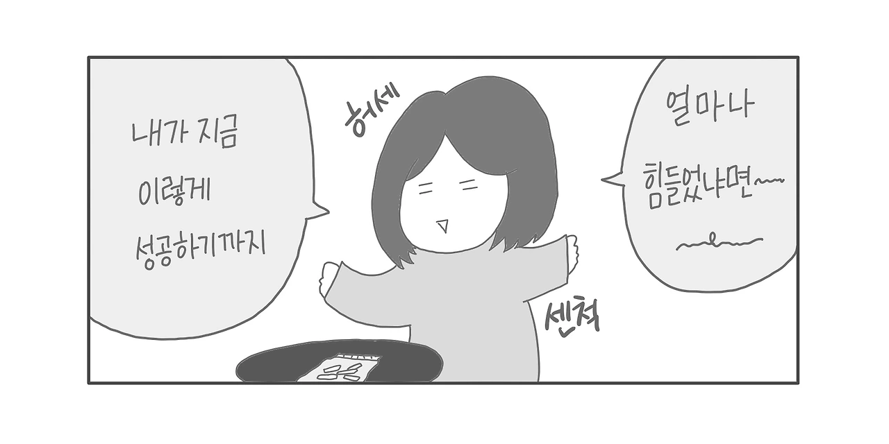 그러나 많은 것을 도전해왔음에도 어느 것 하나 성공한 적이 없었다. 성공의 기준이 따로 있겠냐마는, 본래의 목적이 이직이니까, 생계를 부양할 수 있을 정도의 성공이 나의 목표였다. 그것을 기준으로 한다면 모든 것이 실패였다. 문학 공모전은 죄다 낙방했고, 웹툰은 정식 연재 제의는커녕 관심조차 못 받았으며 꾸준히 업로드하는 것조차 버거웠다. 독립 출판을 했지만 책은 거의 팔리지 않았다.