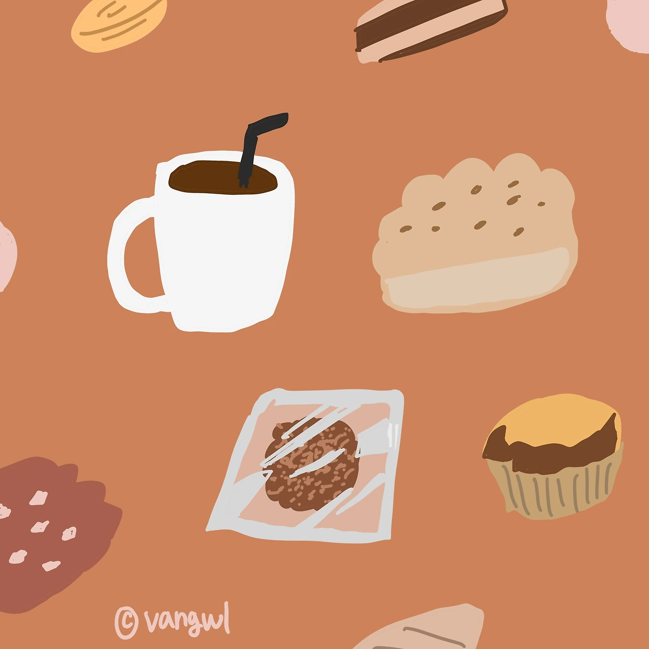 2. 뭘 그릴까 하다가, 오늘은 빵과 쿠키류를 많이 먹은 하루였어서 잔뜩 그려보았다.