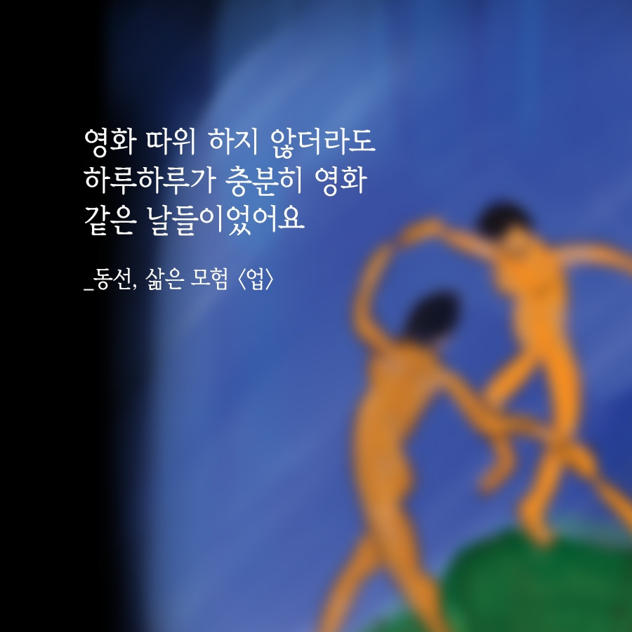 참고로 제목 후보로 끝까지 고민되었던 것 중 하나는 <영화 말고 내 말 좀 들어보라고>였습니다. 그만큼 영화는 구실일 뿐, 영화 속에서 건져 올린 한 올의 실을 가지고 각자의 삶에 대한 글타래를 풀었습니다. 초고에는 총 24편의 영화가 있었지만, 둘 다 무슨 말 못 하다가 죽은 공산당 귀신이 씌었는지 400페이지가 훌쩍 넘을 것 같아서 18편으로 줄였습니다. 그래도 300페이지 안으로 줄이는 거엔 실패를 했네요. 포스터 그림 빼고, 목차 빼고, 책 속 블로그 댓글 빼면 300페이지 이내라고 말할 수는 있겠습니다 (그니까 순식간에 읽을 수 있는 가벼운 책입니다).