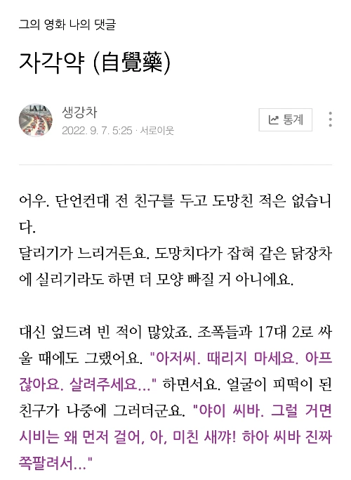 일단 진정을 좀 해야 할 것 같아서 커피를 주문하러 카운터에 가는데 제 팔을 한 차례 때리시더니 (무슨... 영화 <범죄도시>에서 본 것 같은 풀 스윙이었거든요), 그러시더라구요.