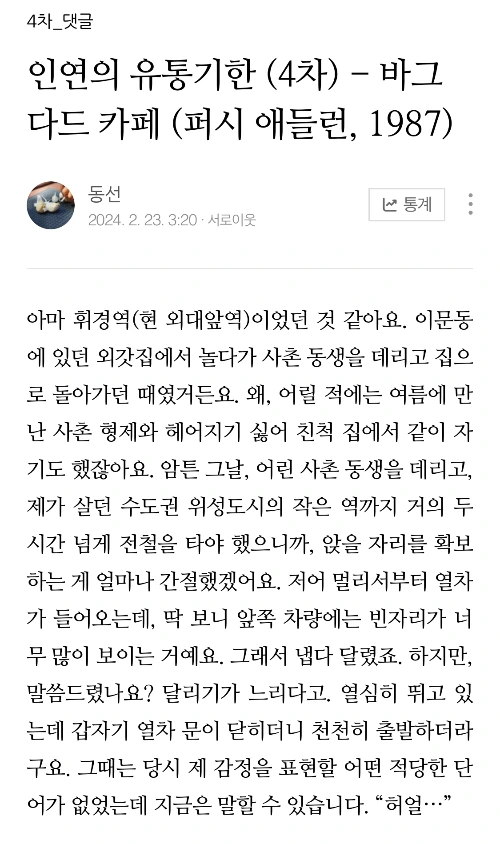 그런데, 이번에 출판사와 계약을 맺고 상업 도서를 만드는 과정은 전혀 달랐습니다. 물론 제 한정된 경험이 한국에서 모든 출판물 제작에 적용되는 건 아니겠지만, 데드라인이 중요하더라도 작품의 품질만큼 중요하지는 않다..라고 할까? 어쩌면 너무나 당연한 걸지도 모르죠. 대자본이 투여되고 수많은 사람들이 결합되어 진행되는 영상산업, 그것도 하청을 받아서 하는 일과, 내가 쓰고 싶은 이야기를 나 혼자 컴퓨터 한 대로 작업하는 집필활동은 말이죠. 아무튼, 바로 직전까지 계속해서 고치고 또 고치는 일이 많았습니다. 물론 그렇게까지 해서 인쇄를 마친 책이라 하더라도 민디 작가님한테 또 오타가 딱 잡혔지만요. https://brunch.co.kr/@mindyleesong/267