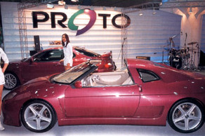 프로토는 제2회 서울모터쇼에 참여해 본인들의 개발 역량을 대중들에게 과시했다. 그 중심에 서있던 차량은 단연 앨란 엑스였다. '자체적으로 디자인 한 컨셉트카를 1년에 한 번씩 공개하겠다'는 김한철의 선언 아래 출품된 이 차량은 이름에서 알 수 있다시피 기아 엘란을 기반으로 제작되었다. 왜 더 저렴하고 데이터도 축적된 (1998년 티뷰론에 자체 개발한 바디킷을 얹은 RT-X를 출시한 바 있음.) 티뷰론 대신 엘란을 테스트베드로 선택한 것일까? 물론 백본 프레임에 VMRP 바디를 조립하는 엘란 특유의 설계 구조가 모노코크 구조의 티뷰론보다 차체 개조 면에서 수월한 점 역시 기인했겠지만, 이 차량의 개발 배경을 살펴보면 보다 자세히 알 수 있다.