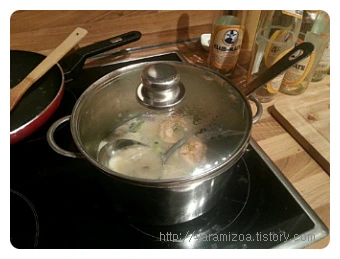 이런 보통 냄비 같은 것으로 지었다.