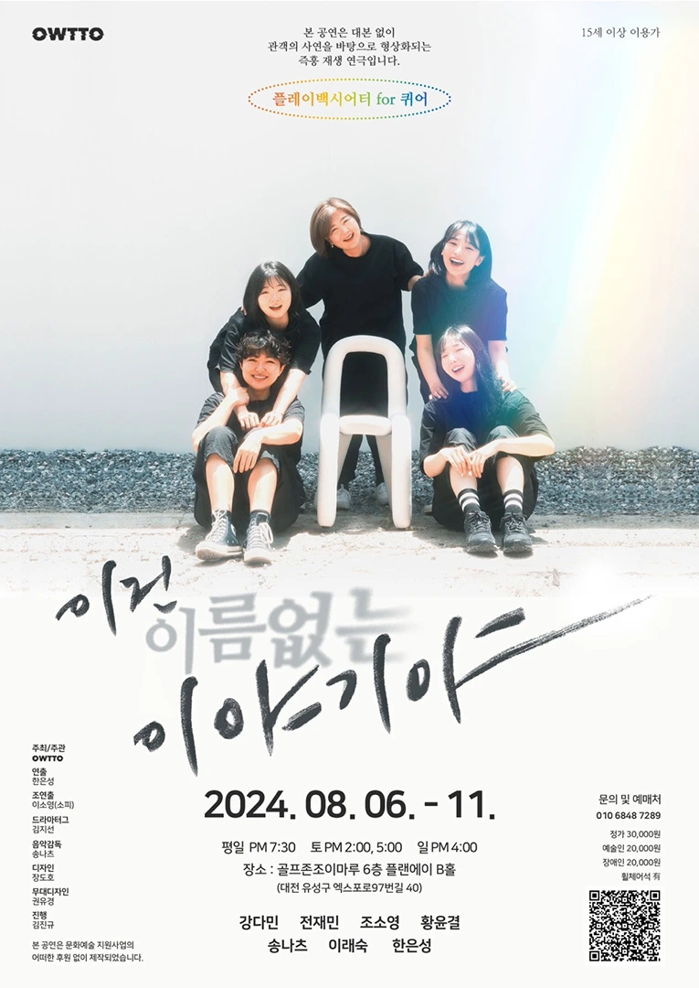 그런데 바로 대전에서, 퀴어 당사자들의 이야기가 무대에 올랐다. 지난 8월 6일부터 11일까지 6일간 공연된 극단 ‘오토(Owtto)’의 연극, <이건 이름없는 이야기야>이다.