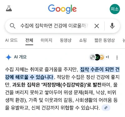 이 전시는 가능성을 제시한 것을 넘어, 전시 제목을 통해 그게 건강에 이로울지 까지 묻는다. 이 질문은 나에 대한 질문이기도 하다. 수집은 나한테 이로울까? 전시에 대한 정보를 찾기 위해 검색하면 이제 AI가 가장 먼저 나서서 답변해 준다. 읽어보면 아마 건강에는 이롭지 않은 모양이다.