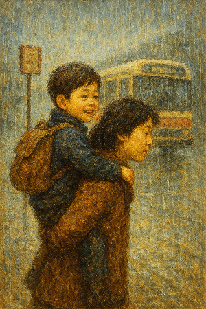 초등학교 2, 3학년쯤 되었을 텐데, 또래 중에 큰 편이었던 나를 또래 중에 작은 편인 어머니가 업으시고 그렇게 하염없이 버스를 기다리셨다. 그날 결국 버스를 탔는지, 탔다면 어디로 갔는지 기억나지 않는다. 그저 나를 업고 계시던 어머니의 사랑만 내 기억 속에 남아있다.