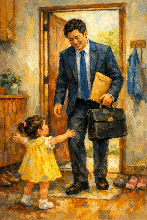 덕분에 아빠가 오면 딸이 달려 나온다. 달려 나와서 살피는 것은 반가운 아빠의 얼굴이 아니라, 아빠의 쉬어버린 목소리도 아니라, 무엇을 가져왔을까 궁금한 아빠의 두 손이다.