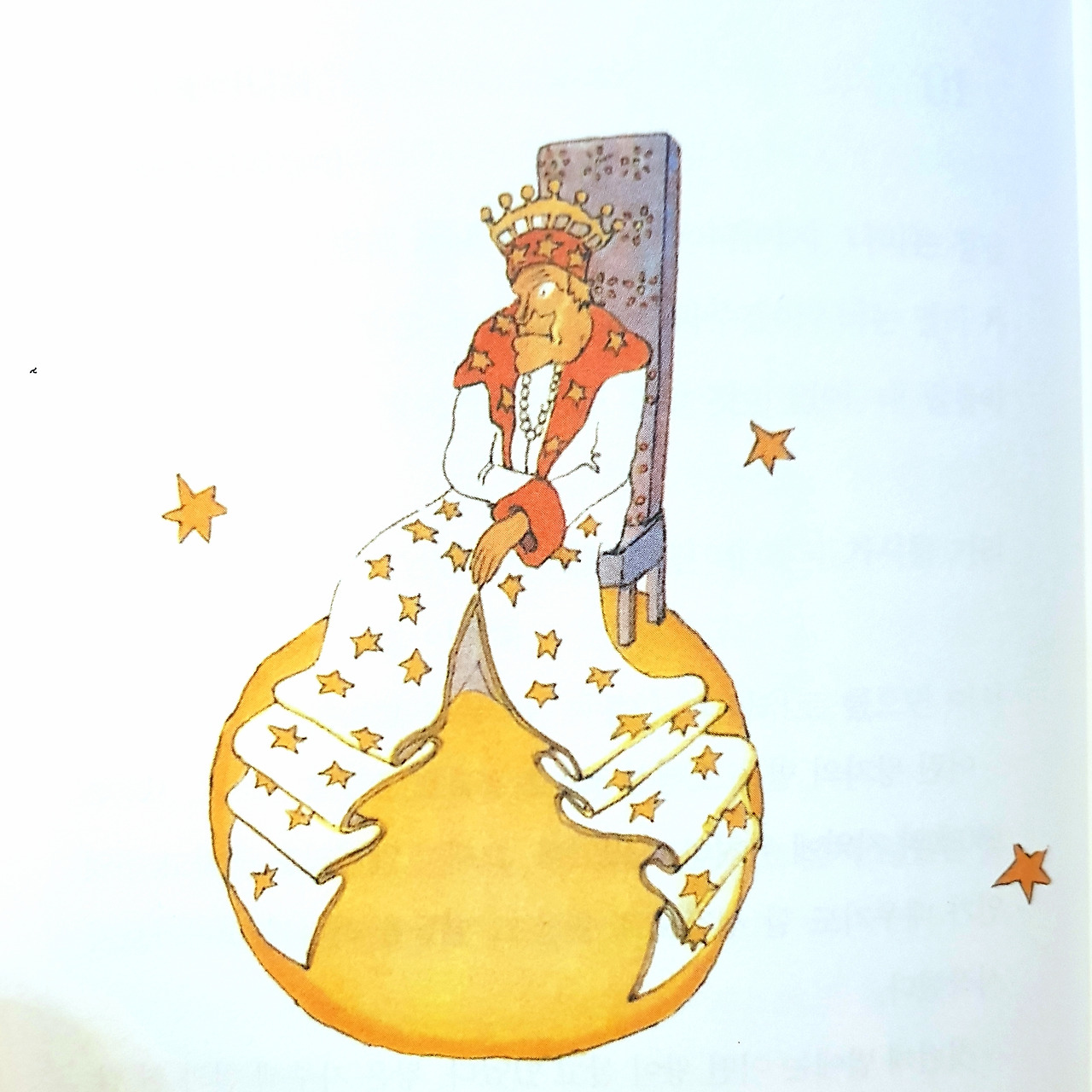 첫 번째 별에는 자신의 권위가 존중되기를 원하는 '왕'이 살고 있다. "모든 것을 다스리노라"라고 얘기한다. 하지만 그 '모든 것'에 대해 그는 얼마나 알고 있을까. 그는 그저 자신에게 복종하는 신하를 갖고 싶어 한다.