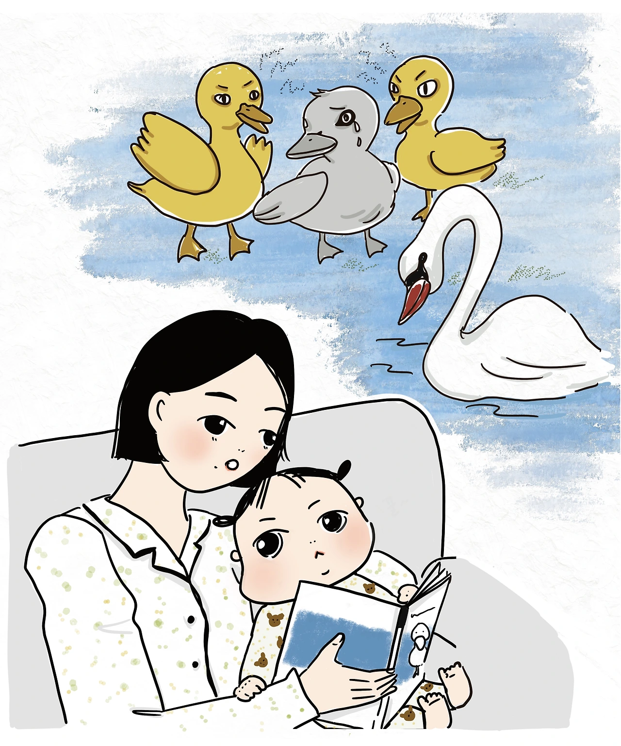 <미운 아기오리>를 딸에게 읽어주다가 든 생각은 - 아기오리가 사실 백조가 아니라 계속 오리였으면? 그랬으면 행복해질 수 없었나? 그럼 그냥 <미운 큰 오리>로 끝나나? 백조든 오리든 아기한테 못생겼다고 괴롭히는 건 아니지 않나? 이건 아동학대 아닌가? 백조였다는 걸 알게 되니까 친구가 생긴다고? 이거 너무 외모 지상주의 아닌가?