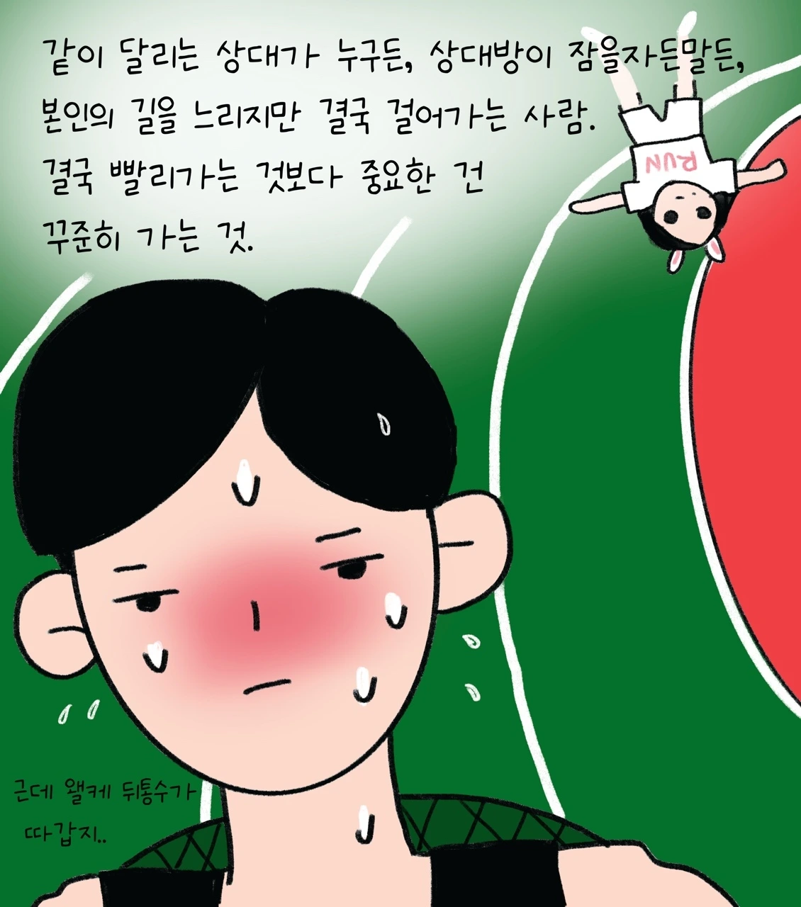 달리고, 지치고, 쉬어보니 새삼 느릿느릿 꾸준히 가는 거북이도, 누구보다 빨리 달리다가 잠시 낮잠을 자고 이번엔 졌지만 다시 달려 나갈 토끼도 , 모두 응원해주고 싶어 졌다.