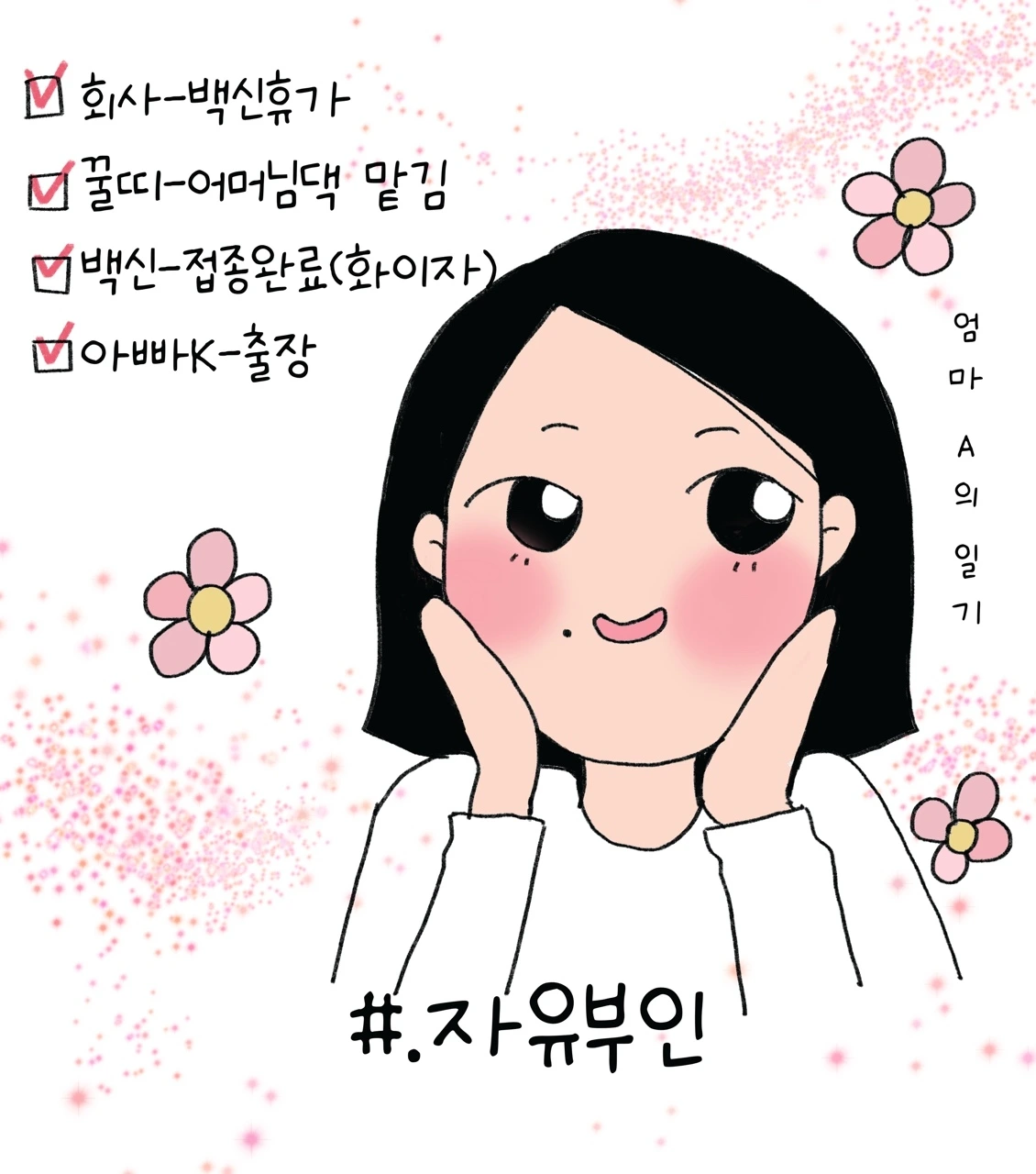 우리 집에서 나와 아가 빼곤 다 2차 접종까지 완료한 상태인데, 사실 가장 번화가에서 가장 많은 사람을 접촉하는 건 워킹맘인 나였기에 (아가를 봐주시는 시어머님은 거의 집에만 계시고, 시아버님은 격일 출근하시는데 거의 도시락을 드신다. 남편은 프리랜서인데 거의 재택근무 중이다.) 가장 백신이 시급한 것 역시 나였다. 회사 스케줄과 집안 스케줄 등 어쩌다 보니 9월의 끝자락에 접종 예약일을 잡았고, 백신 휴가를 내고 오늘 주사를 맞았다. 팔뚝에 살짝 뻐근한 느낌은 있지만 아직까진 괜찮다.