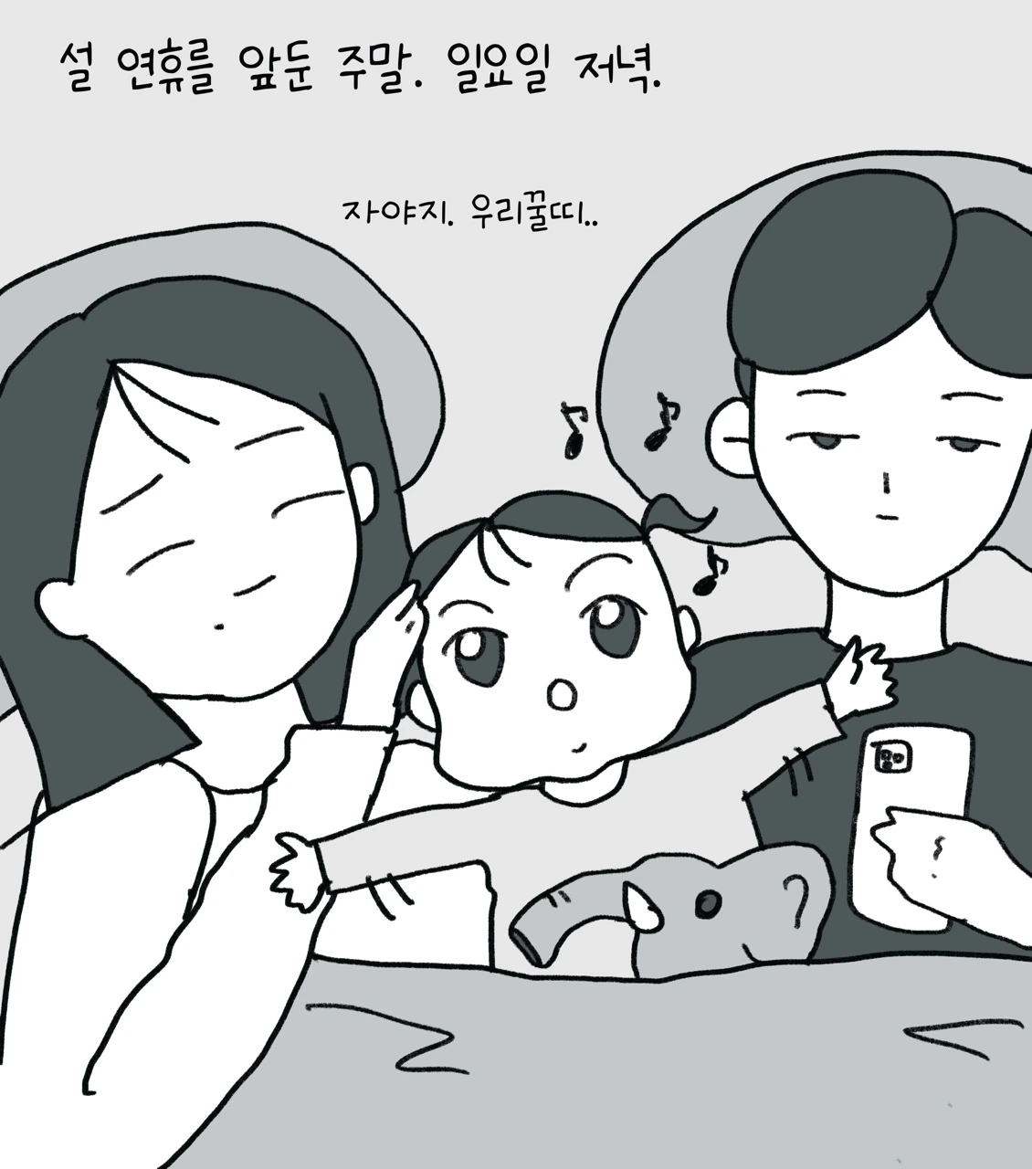 꿀 띠는 팔베개를 해달라, 안아달라, 토닥토닥해달라 주문이 많았다. 나는 아이를 꼭 안고 잠이 들었다.