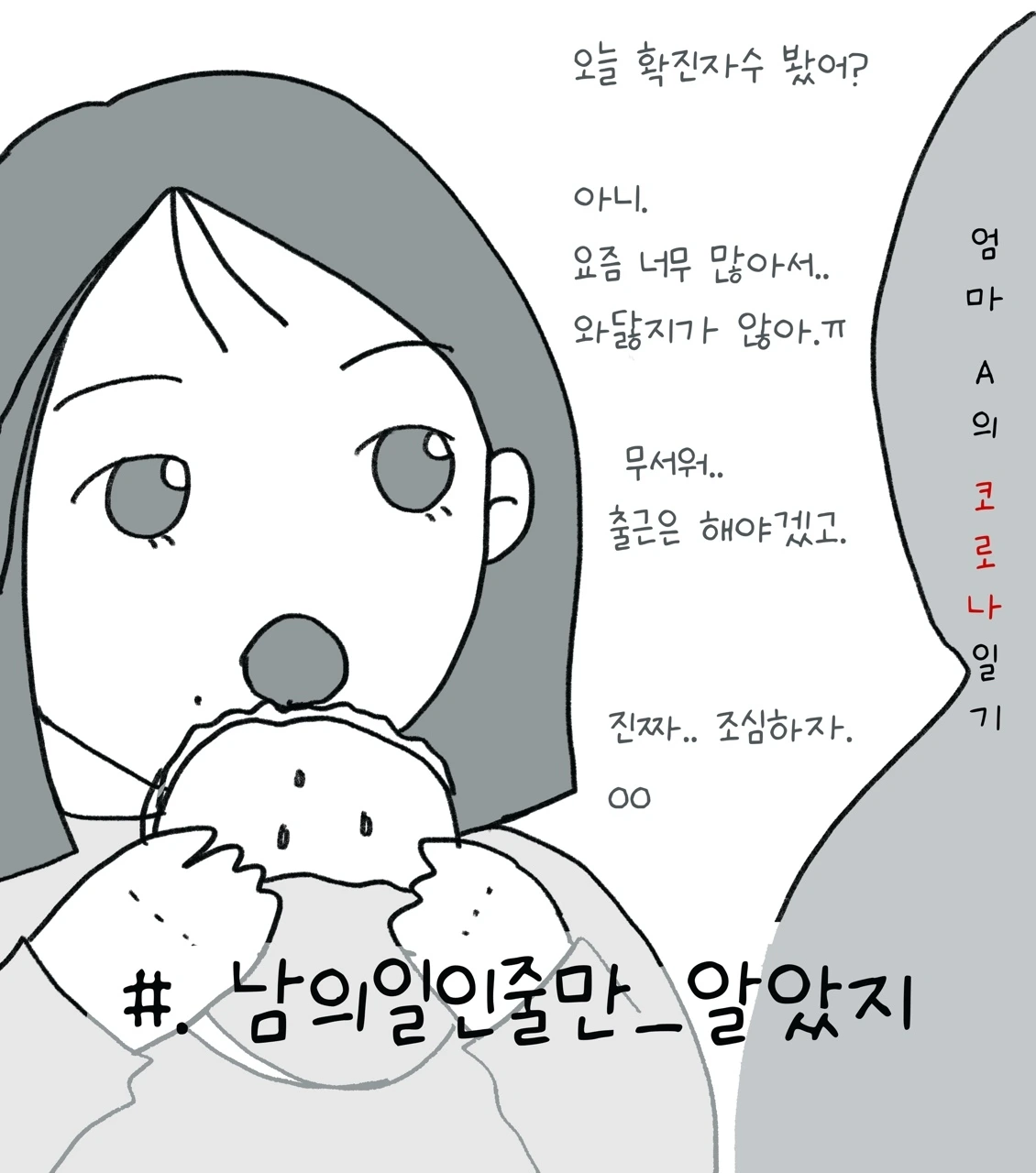 코로나 확진자가 만 명을 넘는 일이 새삼스러워질 만큼, 벌써 몇 년째 마스크와 한 몸으로 살아가고 있지만. “확진자”라는 건 정말 뉴스 속 지인의 지인들 에게만 일어나는 일이라고 생각했다.