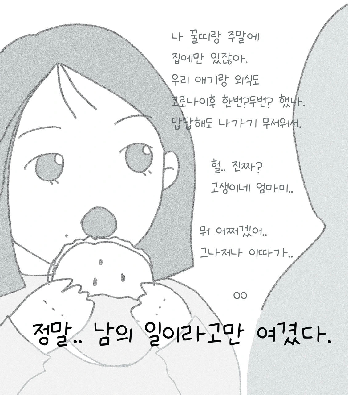 아이는 남편이 코를 쑤셨다며 서럽게도 엉엉 울었고, 나도 눈물이 날 것만 같았다. 꿀 띠는 아직 31개월밖에 안된 아인데.. 우리 애가 코로나 라니.