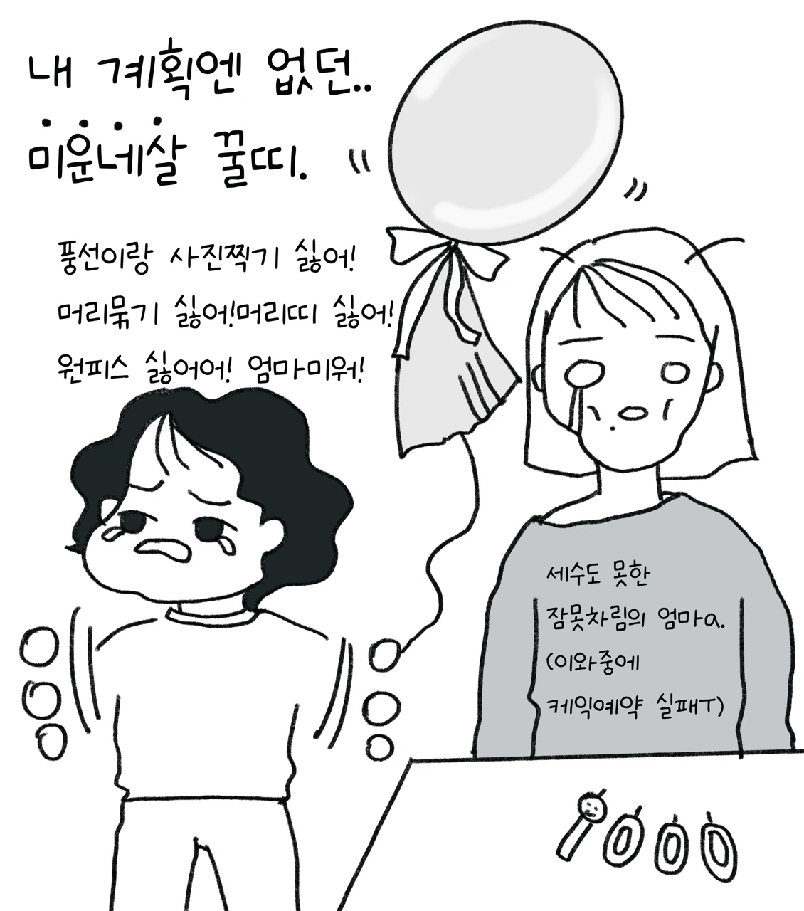 나름 풍선도 사고 옷도 사고… 했지만 다 싫대..