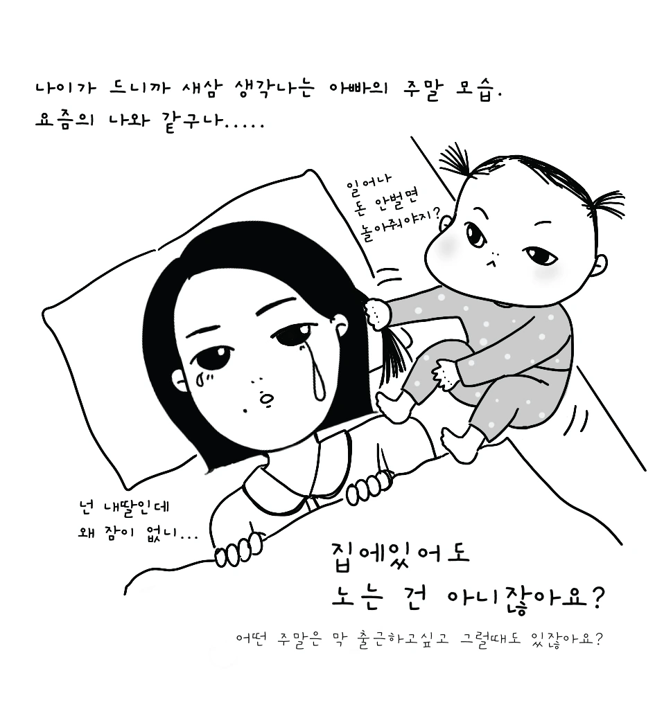 아, 그리고 솔직히 주말에 애기 보는 거. 진짜 쉽지 않다. 내 아이고 너무 예쁘고 사랑스럽지만 체력소모는 출근만큼 어마어마하다. 근데 무급이라니 이 얼마나 자본주의의 원리에 위배되는 일인가!