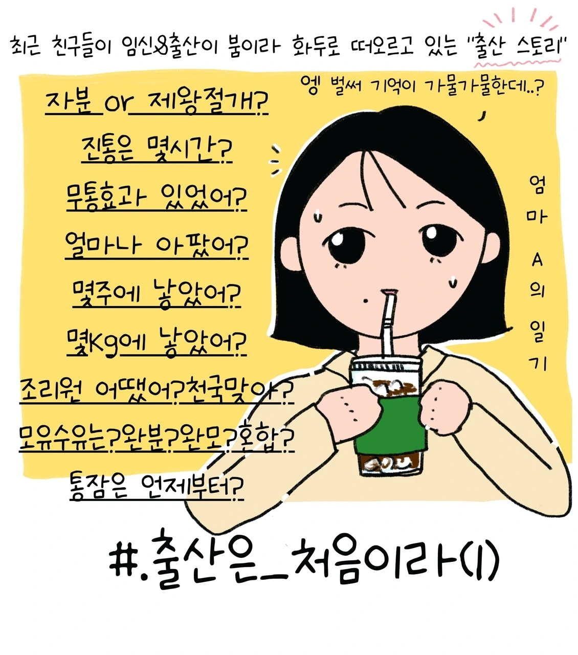 최근에 임신&출산한 지인들이 많아서벌써 가물가물한 내 정신 기록용임신도 출산도 처음이라 걱정도 많고 무서웠던 저때.(텍스트 많음 주의) 출산 썰은 3부작 예정입니다#많관부 #출산은_처음이라 #엄마 a의 일기 #꿀띠네툰 #출산툰