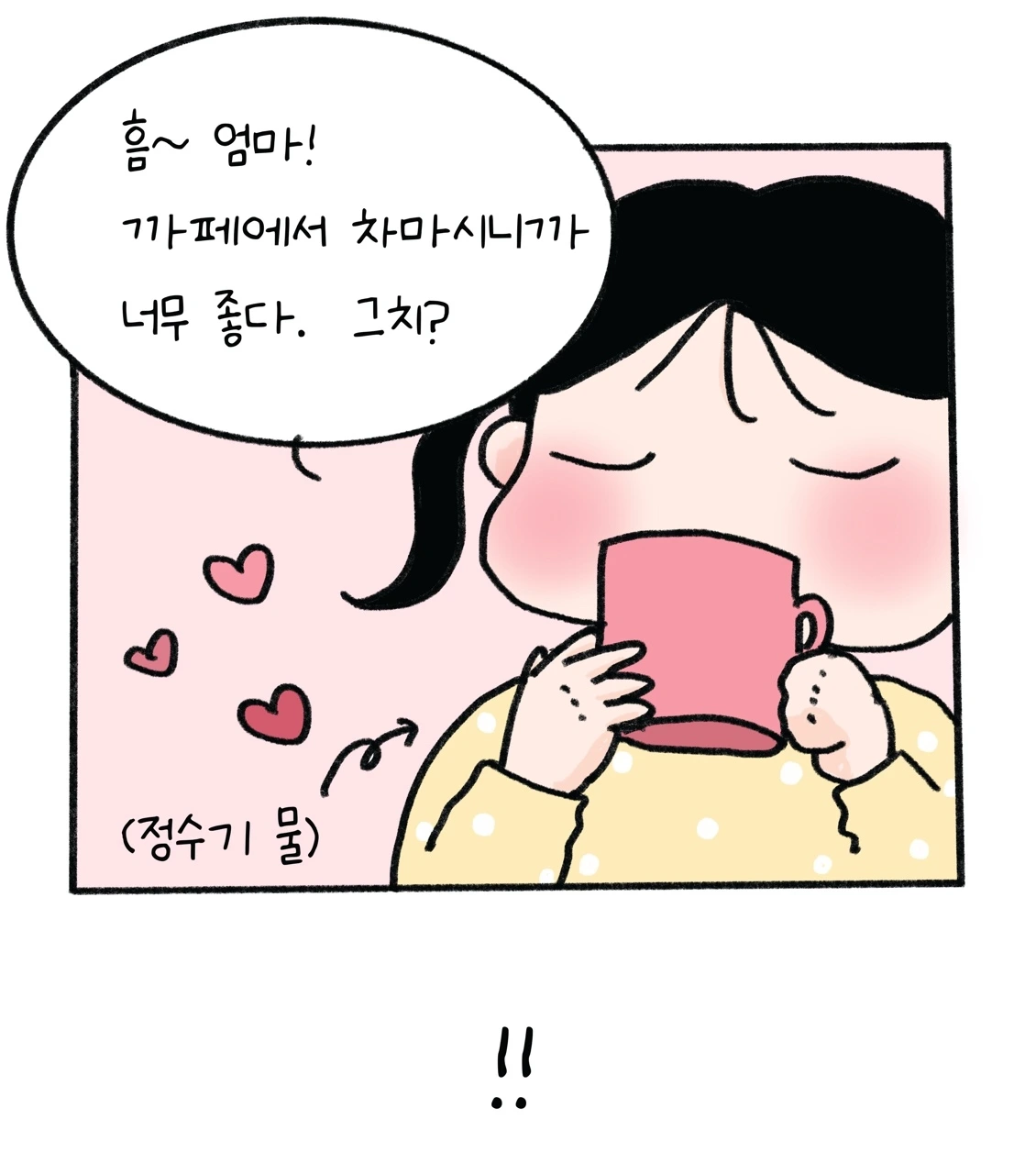 그런데 정수기물 마시며 차가 향긋하다고 말하는