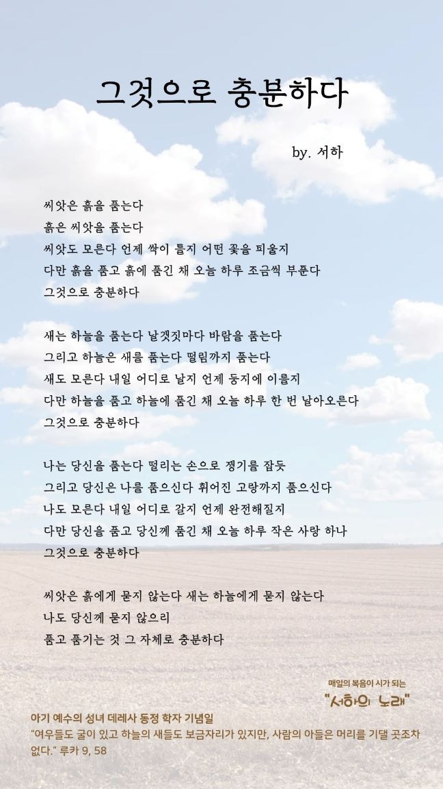 오늘 하루, 주님과 함께 내가 할 수 있는 작은 사랑 하나면 충분하다.