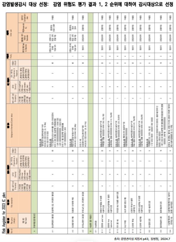 감시 대상은 감염관리사업계획 시 감염위험평가를 통해 감염감시 대상을 선정합니다.