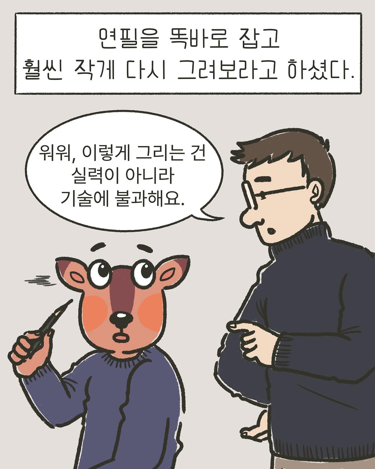 “워워, 이렇게 그리는 건 실력이 아니라 기술에 불과해요.”
