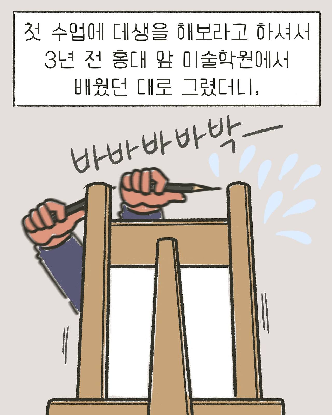 3년 전 홍대 앞 미술학원에서 배웠던 그대로 최대한 빠르게 바바바박 그렸더니,