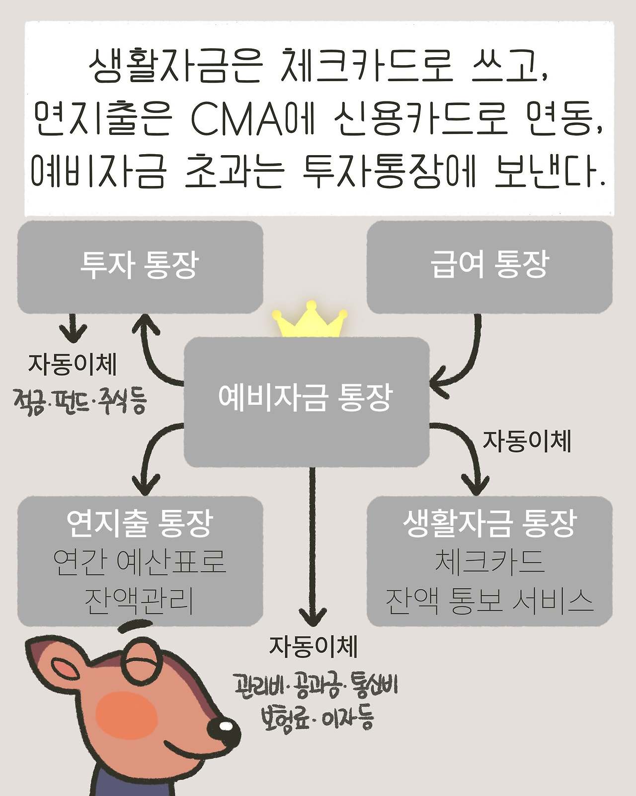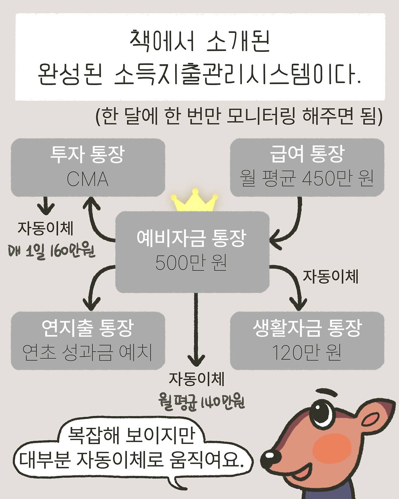 복잡해 보이지만 대부분 자동이체로 움직이고 한 달에 한 번만 모니터링해 주면 된다.