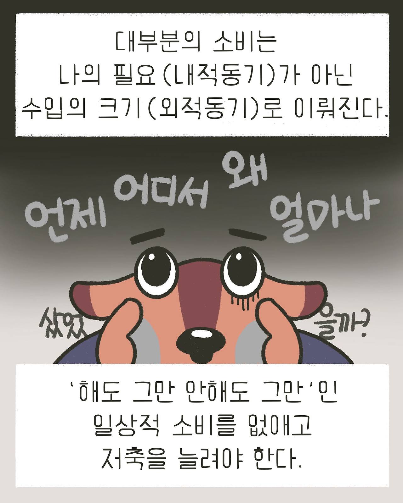 대부분의 소비는 나의 필요라는 내적 동기보다 수입의 크기라는 외적 동기에서 이뤄진다.