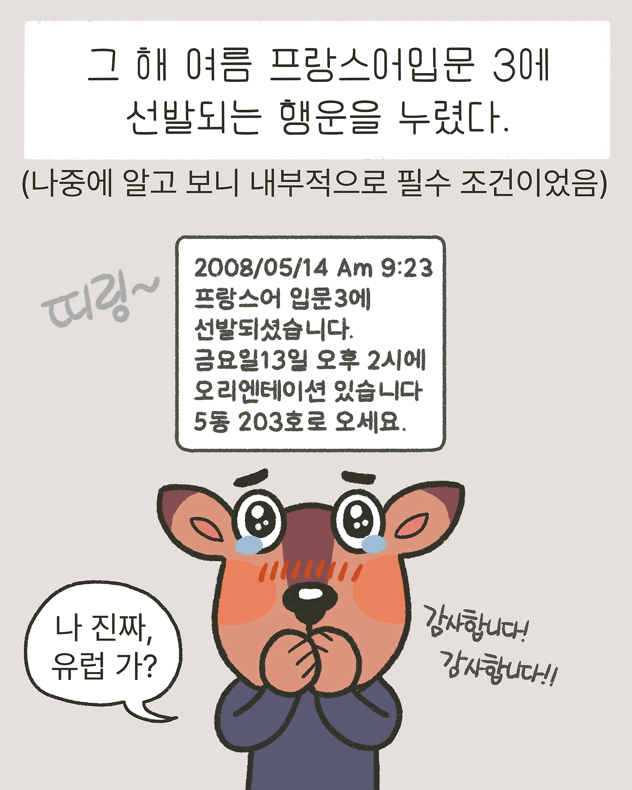 그 해 여름 프랑스어입문 3에 선발되는 행운을 누렸다.