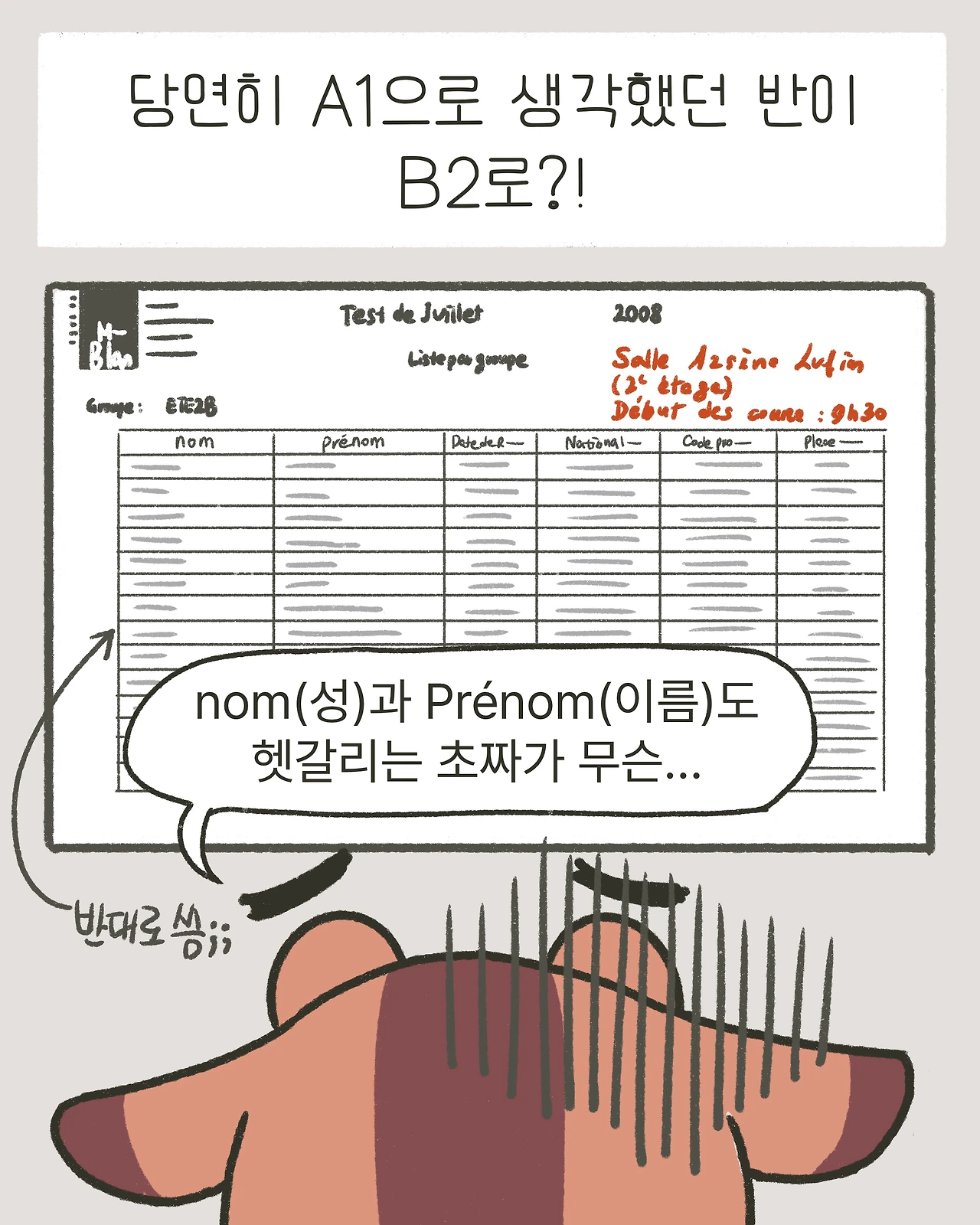 웃겼던 건 성(Nom)과 이름(Prénom)을 헷갈린 왕초보 노노루의 이름이