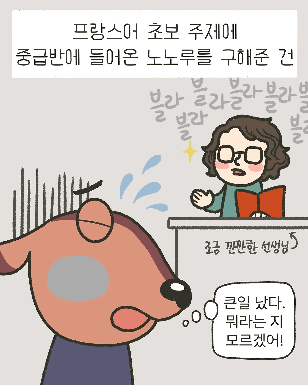 프랑스어 초보 주제에 중급반에 들어온 노노루.