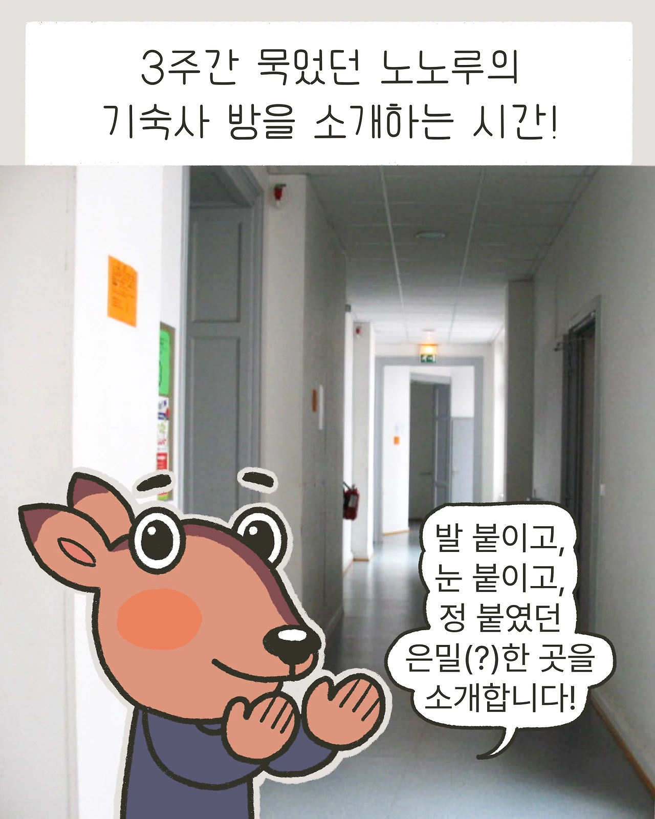 3주간 노노루가 발 붙이고, 눈 붙이고, 정 붙였던 은밀한(?) 곳을 남기려 한다.