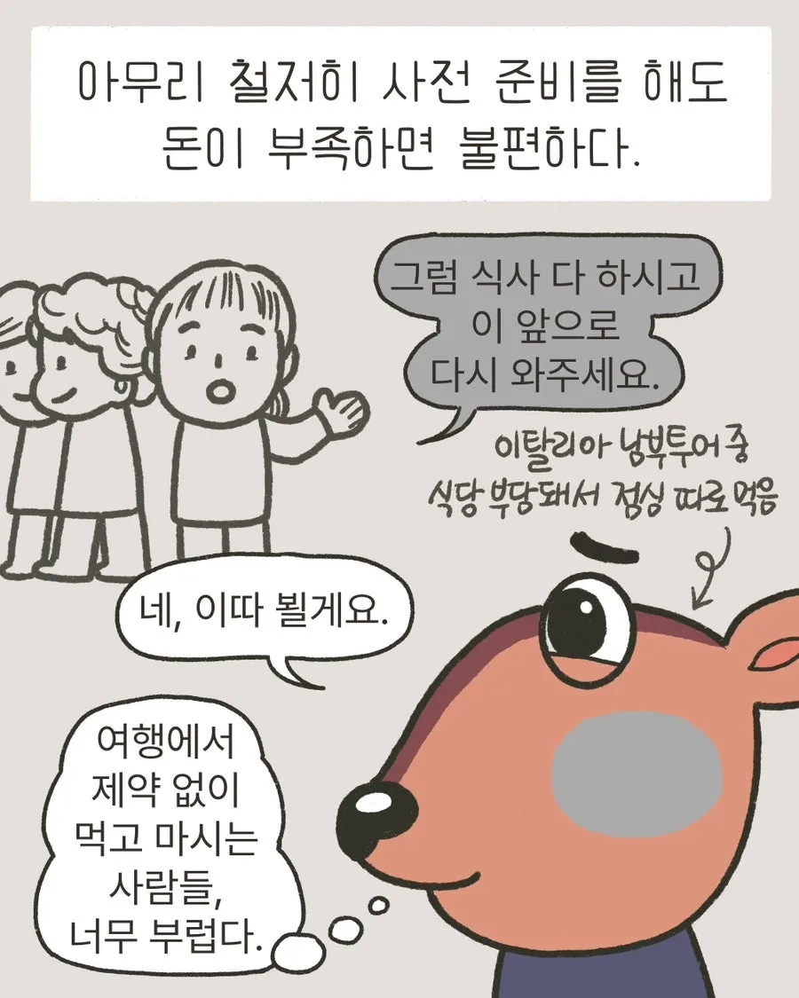 여행 가서 돈 걱정 않는 사람들이 그렇게 부러울 수가 없었다.