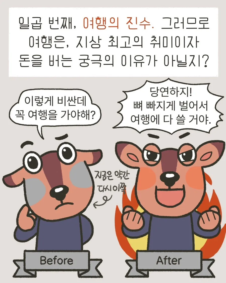 그 돈들을 여행을 위해서 써도 아무런 아까움이 들 것 같지가 않다.