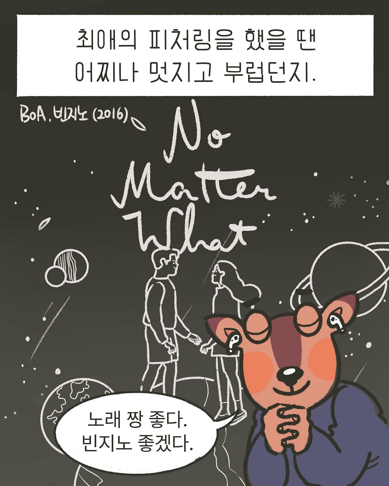 7년 후 최애의 피처링(No Matter What, BoA/빈지노, 2016)을 했을 땐 어찌나 멋지고 부럽던지.