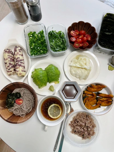 (과일, 채소, 감자, 고구마, 현미밥을 고른 적이 있던가?)