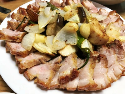 압력솥에 수육을 삶아서 술과 먹은 뒤,