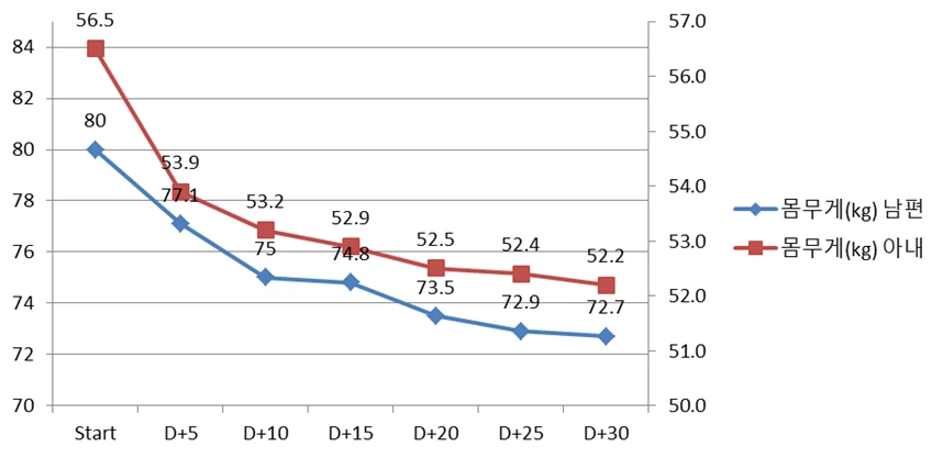 한 달 동안 3kg(체중의 3.6%) 정도 감량했었는데,