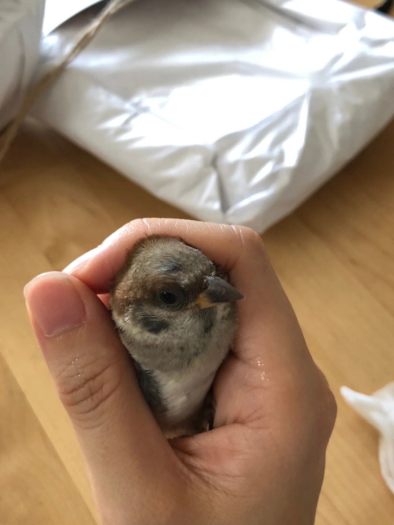 부리가 아직은 노란 아기 참새, 얼마나 아팠을까?