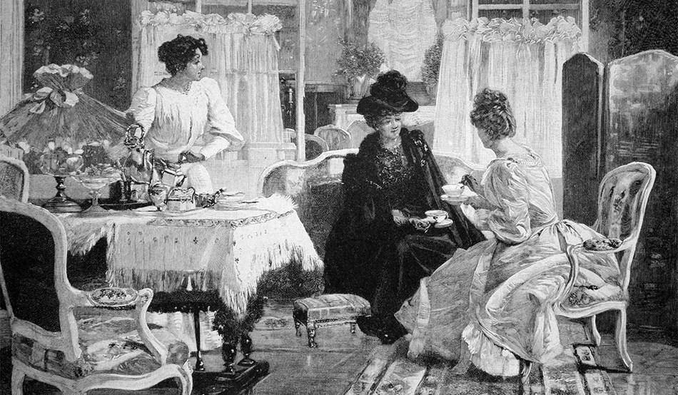 남자들이 커피 하우스에있는 동안, 집안의 여자들은 하인을 멀리 보내고 그녀의 방에있는 캐주얼하고 친밀한 분위기에서 친구들을 위해 차를 따르면서 오후를 즐기게 되었을 것이다.