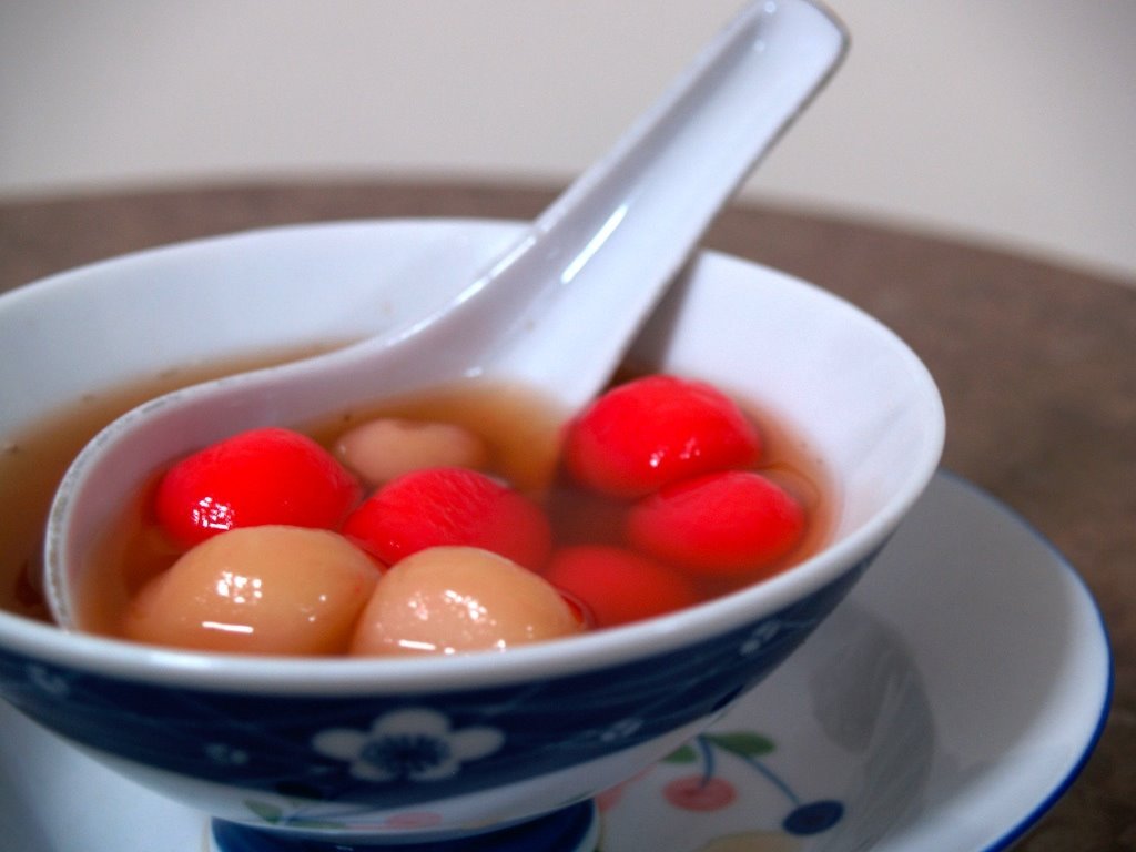 '탕안에 둥근 공'으로 번역되는 '통전 tong jyun 湯圓 '으로 알려진 이 디저트는 우리가 흔히 생각하는 쌀가루 반죽으로 만든 부드러운 떡 안에 설탕, 참깨, 달콤한 단팥으로 가득 차 있다. 전통적으로, 중국에서의 둥근 모양은 공생을 상징하기 때문에 명절이나 결혼식에서도 제공된다.