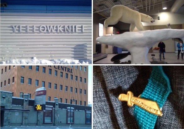 오지의 소규모 지역공항이라 그런가 건물 밖 허연 색 옐로나이프란 글씨와 건물 안 한 마리 북극곰 동상이 안팎으로 썰렁하게 여행자를 맞는다. 여기는 영하 30도. 안경에 김이 서리자마자 얼어서 앞이 안 보인다. 옐로나이프는 선주민이 노란 칼을 들고 있었어서 붙여진 지명이다. 오로라 빌리지 웰컴 킷에 북쪽에 가까이 왔다는 인증서도 있고 멀리 오긴 왔다.