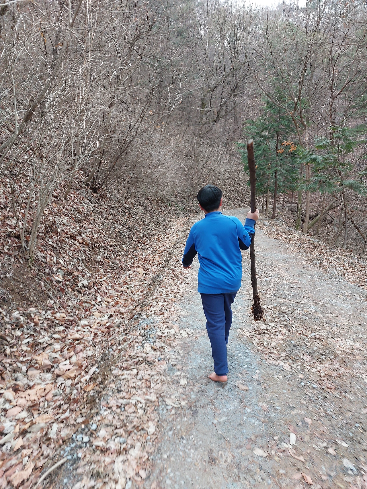엄마가 맨발 걷기를 하니 아이도 산에 가면 맨발로 걸어요. 맨발 걷기가 몸에 좋다고 하지만 한 달에 한 번 근육통, 두통, 구토로 몸살을 알아요. 병원 링거 맞고 회복하기까지 시간이 걸리지만 다음날이면 산에 가요.