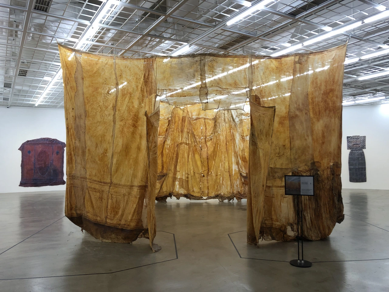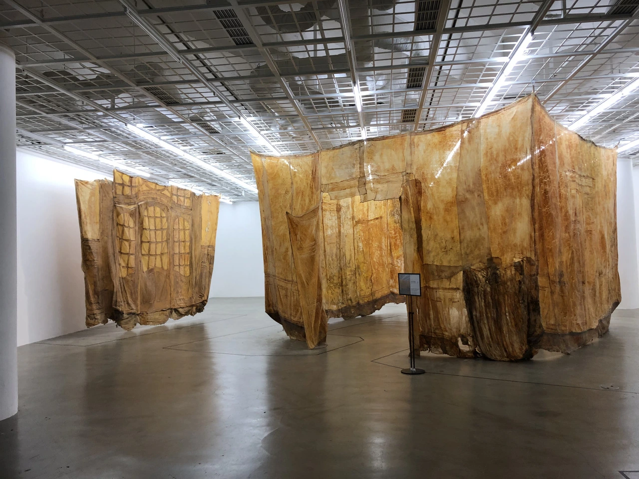 전시장에 설치된 라텍스 천은 뻣뻣하면서도 생명을 잃은 듯 생기 없어 보인다. 마치 작가를 포함한 많은 여자를 억압해온 사회적 굴레와 시선이 이제는 세월의 힘에 설 곳을 잃은 것처럼. 작품은 천장에 매달려 고정되어 있는데, 양들의 침묵의 충격적인 한 장면이 떠오를만큼 강렬하고 압도적인 디스플레이다. 빈스방거 박사의 진찰실 작품은 안쪽을 걸어다닐 수 있게 되어있다. 창문틀, 문고리까지 그대로 재현된 이 공간을 걷고 있으면 소름이 돋고 으스스한 감정을 숨기기 어렵다. 이외에도 가부장, 권위의 상징이었던 아버지의 서재 내부를 스키닝한 작품도 있는데 집 전체를 고스란히 옮겨온 듯한, 하지만 더이상 튼튼하고 견고한 집이 아니라 흐물흐물하고 힘 없어진 소재가 주는 느낌이 절묘하다.