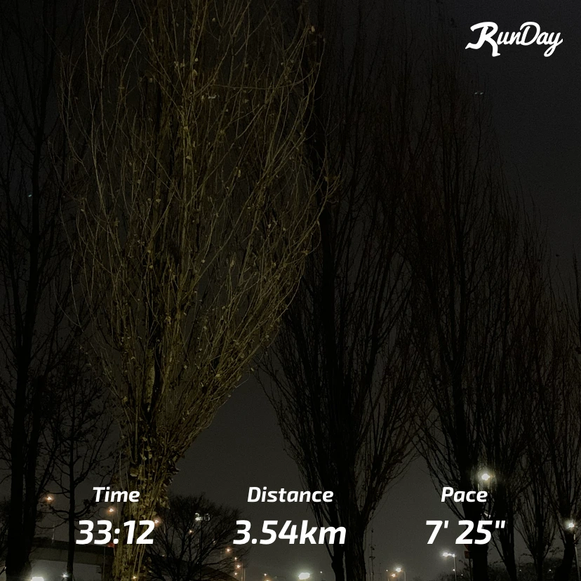 오늘도 비몽사몽 간의 저녁 러닝. 점심에 먹은 게 소화가 안 돼서 몸이 무거웠다. 게다가 오늘은 갑자기 3분 달리기로 30초가 늘었다. 30초 뭐 별거냐 싶지만, 뛰어 본 사람들은 안다. 30초면 갑자기 폐가 아프다고. 오늘은 미세 먼지가 심해서 그런지 숨 쉬는 게 답답했다. 그래도 일단 뛰었다. 뛰는 와중에 물닭을 잔뜩 보았고 구형 스케이트를 신고 있는 아이들을 보았고 똑같은 빨간색 패딩을 입은 사람들을 보았다. 날이 따뜻해서 오늘은 패딩을 벗고 윈드브레이커만 입고 뛰었는데도 춥지 않았다. 봄이라고 해도 될까? 방심은 금물. 오늘은 평소보다 멀리 뛰었다.