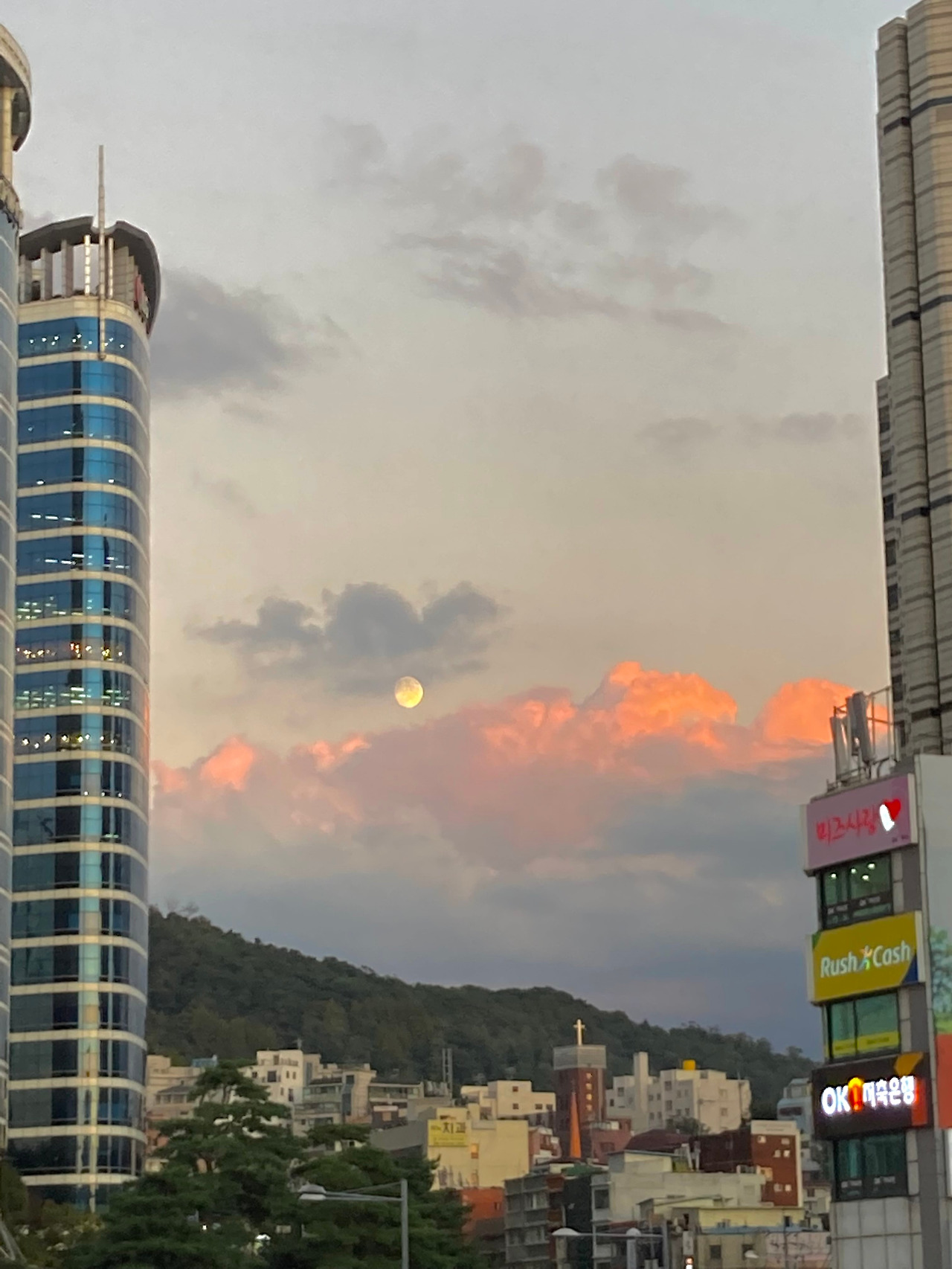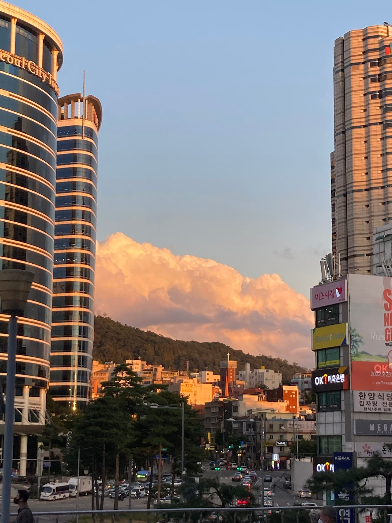 그 길에 어마어마하게 아름다운 하늘을 만났지.